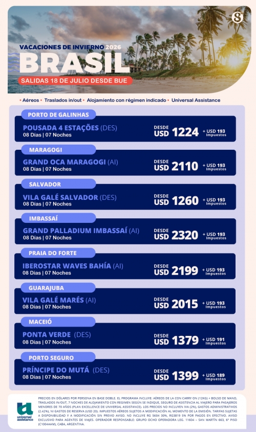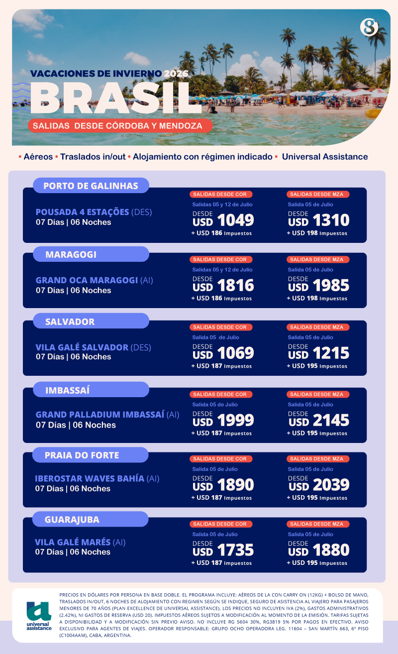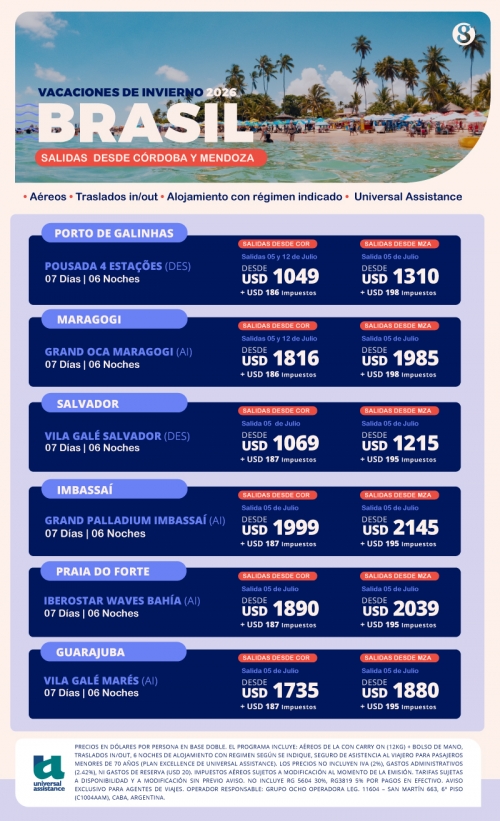 Brasil Vacaciones de Invierno desde COR y MDZ