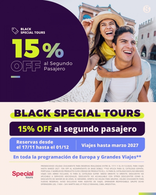 Black Special Tours 15% Off al 2do Pasajero
