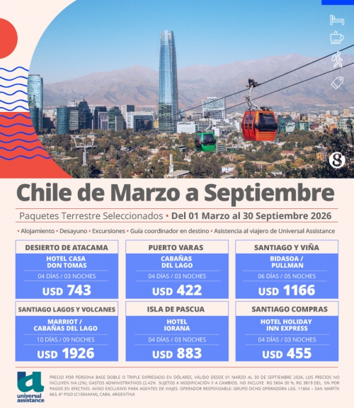 Chile de Marzo a Septiembre. Aprovecha estas Promos